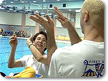 | 振り付けは英語と身振りで行われる。 それを銅メダリスト田中京さんが訳す。 |
