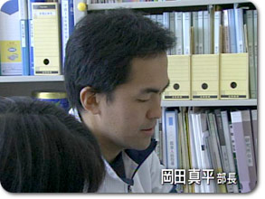 研究所部長の岡田真平さんは、薬ではなく、日常のケアーが大切という考えを住民に浸透させるために、さまざまな仕掛けをつくりながら日々忙しく働いています。 |