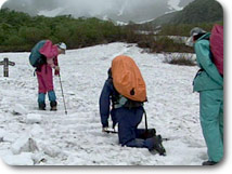 雪渓は思った以上にハードで、途中何度も足をとられました。