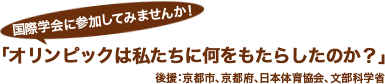 これからの豊かなスポーツのあり方を研究する「国際スポーツ社会学会世界会議」が、京都大学で開催され(7月26日から29日まで)、世界40カ国から約300人近い研究者が集まります。