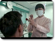 李寧を見つけた患者さんたちが、目に包帯をしたまま口々に叫びます。