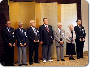 冨成さんは、今回スポーツグランプリという賞を受賞されました。この賞は長年にわたるスポーツ実践者で、現在も活動を継続し、中高年齢層の顕著な記録や実績を挙げ、国内外において高い評価を得た個人又はグループに与えられるもので今回で3回目を迎えます。表彰式は国民体育大会が行われた大分で行われ、天皇皇后両殿下との懇談の場も設けられました。今回、冨成さんも含めて表彰されたのは6名の方でした。左からご紹介いたしましょう。