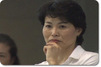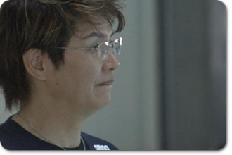 じっと見つめる本間三和子シンクロ委員長 |