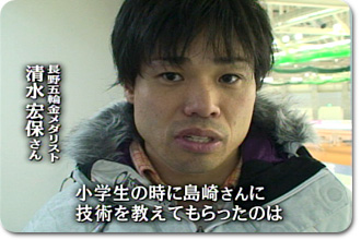 清水宏保:「スケーティング技術は小学校のころにある程度出来上がってきてしまうですよ。「だからその、小学生のときに島崎さんに技術を教えてもらったというのはものすごく大きいことだと思います。」 |