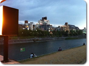 鴨川には、沢山のカップルが等間隔に座り・・・