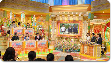 中央のセットには、風車や朝顔の花が飾り付けられ“お祭り”をイメージ!! |