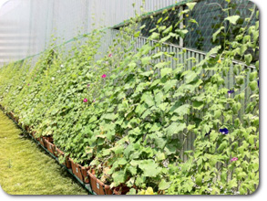 蔓は、網をつたって7階廊下の天井近くにまで伸び、 見事な「緑のカーテン」を作り出しています!!
