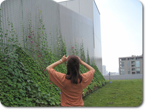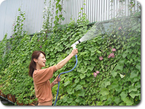 夏休みを頂いた関係で、ちょっと間が空いてしまいましたが、 さてさて『緑のカーテン』どんな風に成長しているんでしょうか・・・ なんと!
