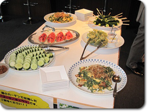 収穫された、キュウリやゴーヤ、スイカなどが美味しそうな料理に変身!! 私はこの日参加出来なかったのですが・・・(泣) 聞くところによると、大盛況だったそうです!! あ〜食べたかったなぁ・・・でも、まだメロンが残ってます♪
