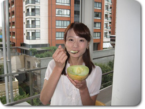 「んん!美味し〜!!!」思わず絶叫☆ ジューシーかつ、上品な甘さと爽やかな香り♪ 今年食べたメロンの中で、ダントツに美味しかったです! きっと私の愛情がメロンにも届いたのだと信じています・・・