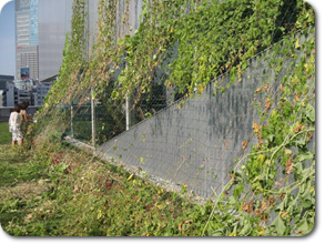 7月上旬 台風による暴風・暴雨により、 当初はその成長が危ぶまれた『緑のカーテン』