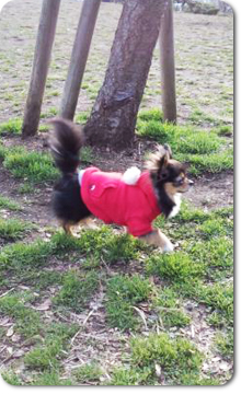 少しずつ外も散歩できるようになり、 今では弾丸のようなスピードで公園を駆け回ります☆ 桜祭りでは、お友達も出来ました♪