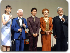 小林桂さん(Vo)、マーサ三宅さん(Vo)、北村英治さん(Cl)と。 |