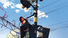 沿道の自動販売機、上下線の電光掲示板。