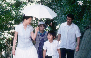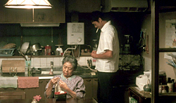 息子夫婦が滞在を終えて、帰りのバスに乗り込む場面がある。