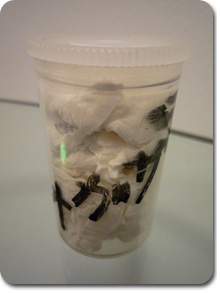 ぱりぱりと種を取って、カメラのフィルムケースに入れる。
