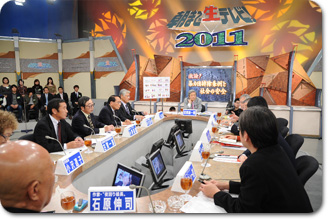 田原総一朗さんを囲んでの打合せが始まるのは、日付の変わる少し前。