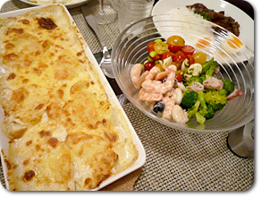 当日は、サラダ、グラタン、