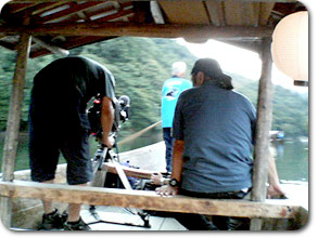 「屋形船に乗りながら、大文字を鑑賞する」という、何とも雅やかな撮影のため。