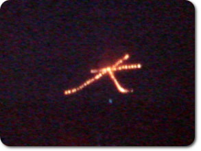 遠くに、点のようについた明かりが広がり、浮かび上がる「大」の字。