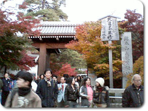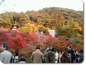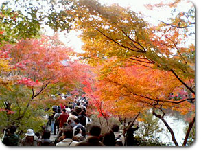 左右に紅葉がせり出す道を人の流れに乗って歩きます。