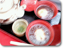 温まりに・・・茶店で善哉(ぜんざい)を頂きました。 |