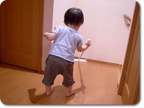 よちよち歩きながら、ワイパーで拭き拭きする。 |