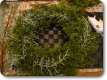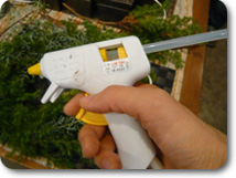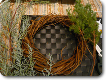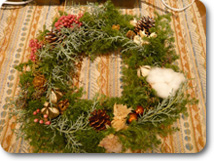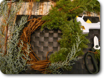 始めに、土台にフレッシュのもみを飾り付けていきます。 |