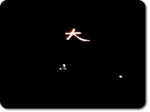 「五山の送り火」である、「大文字」です。 東の山に明るく灯る「大」
