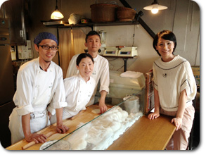 「一圓」の餃子を作る「篭蔵」にて、社長さん(左から3人目)スタッフの皆さんと
