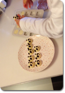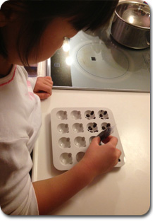 その上に、湯せんで溶かしたホワイトチョコを型に流し込みます。