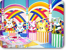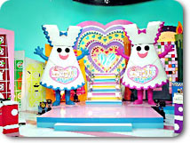試食セットも、と〜っても可愛くなりました!!後ろには様々な表情のエプロンちゃんオブジェもいますよ!!