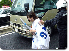 先日、このホームページにも予告編を書かせて頂いた「アテネ五輪・聖火ランナー」ですが、転ぶことなく無事に完走する事ができました!!