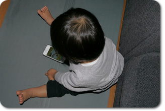 「泣き止み ゴーちゃん。」を見せると瞬時にスマートフォンにくぎ付け。