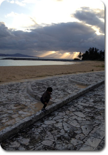 …名護球場前の海岸にて
