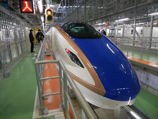 お披露目目前のW7系が集結している「白山総合車両所」へ。
