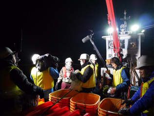 そして、放送当日は水橋漁港の方たちにご協力いただいて、