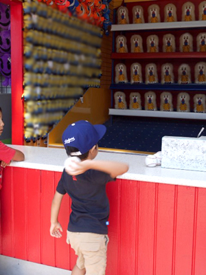 4つのボールを投げて、2つ以上の的を倒すとぬいぐるみが貰えるゲーム。