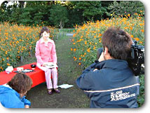こんなかわいらしいお花の前で中継ができるなんて!!と感激もつかの間、極度の緊張が私を襲いました(><)