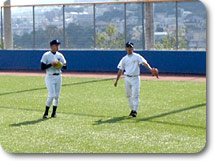 大阪は連日35度以上にもなる厳しい残暑が続いていましたが、そんなことはなんのその、選手たちは野球がやりたい!という気持ちを解き放つかのように、楽しそうに練習を始めていました。 |