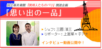 若かりし頃、外国人芸術家と同じように、パリやその他のフランスの都市で修行を積んだシェフやパティシエに、その当時の思い出の一品を、