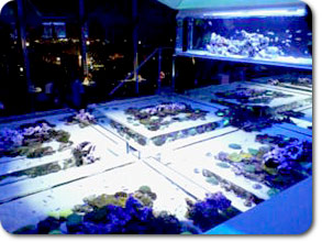 週末には夜中までやっていて、夜景と一緒に水槽が妖しく光り、