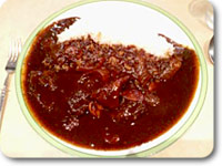 ルーがお肉と玉ねぎのエキスを含んでキラキラと光っていました。