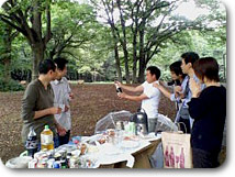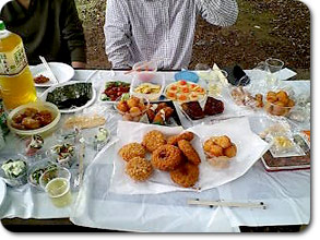 緑に囲まれて食べるおにぎりやから揚げは思った以上に美味しく、