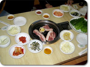 私が最も好きな「食事」ですが、済州島では、名物の「黒豚」を使った豚の焼肉や、あわびのお粥を食べました♪ |