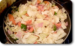 下の写真はまだ麺を入れる前の、具材を炒めている状態。 |