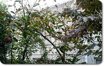 まさか、庭に柿が生ってる?????