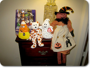 一番左の三角の人形はハロウィンの時期特有の飴、