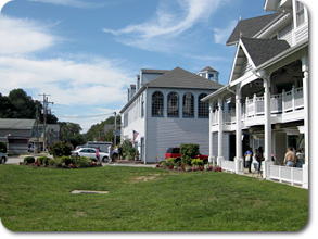 青い空に木造建築の建物が映えて、アメリカ国旗が良く似合っていました。 |