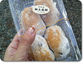 4日目の中継場所、源光庵のある鷹峯の名物「御土居餅」も美味でした! |